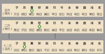 建、除、满、平、定、执、破、危、成、收、开、闭。